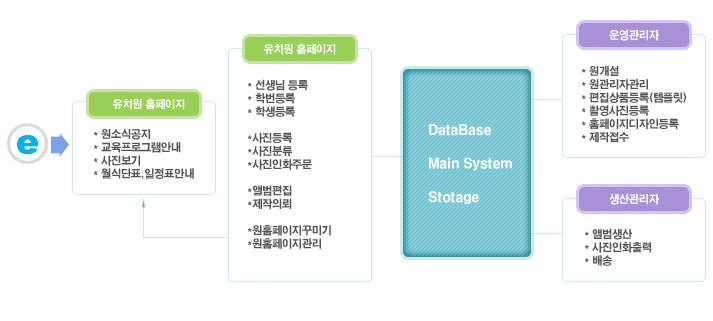 1. Ãʱ⠰³¼³½Ã ¹× ½ÅÇг⿡ ¸ÂÃç ¼±»ý´Ô, ÇйÝ, ¿ø»ý Á¤º¸¸¦ µî·Ï, °ü¸® 2. ¿ø¿¡¼ ÃÔ¿µÇÑ »çÁøÀ» ½Ã½ºÅÛÀ¸·Î ¾÷·Îµå 3. µî·ÏÇÑ »çÁøÀ» °¢ ¿ø¾Æº°·Î ºÐ·ù (Æú´õ¾÷·Îµå »ç¿ë½Ã ºÐ·ù¾øÀÌ ¿ø¾Æº°·Î µî·Ï°¡´É) 4. ºÐ·ùµÈ »çÁøÀ» ÀÌ¿ëÇÏ¿© »óǰÆíÁý 5. ȨÆäÀÌÁö °ü¸®, ¿î¿µ |